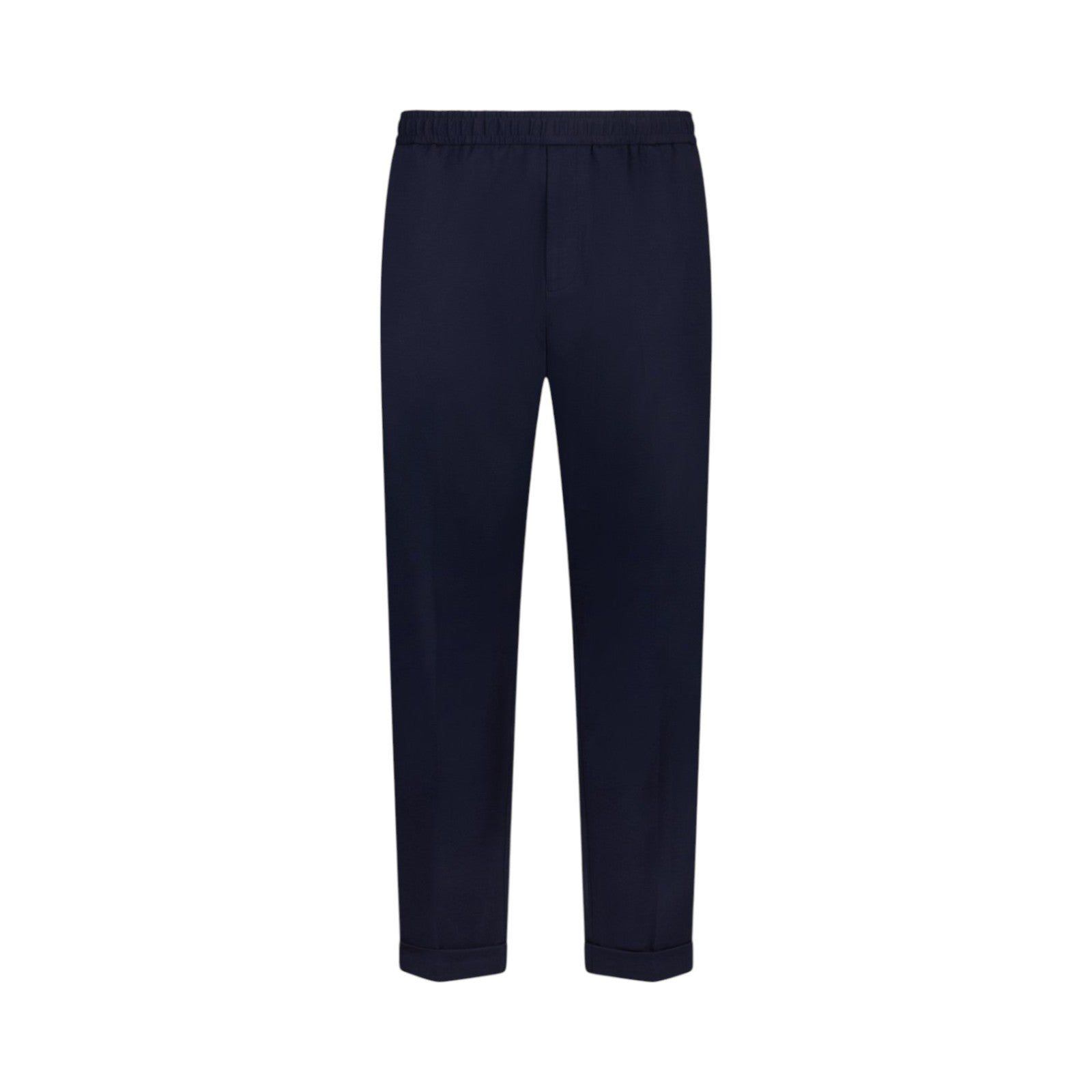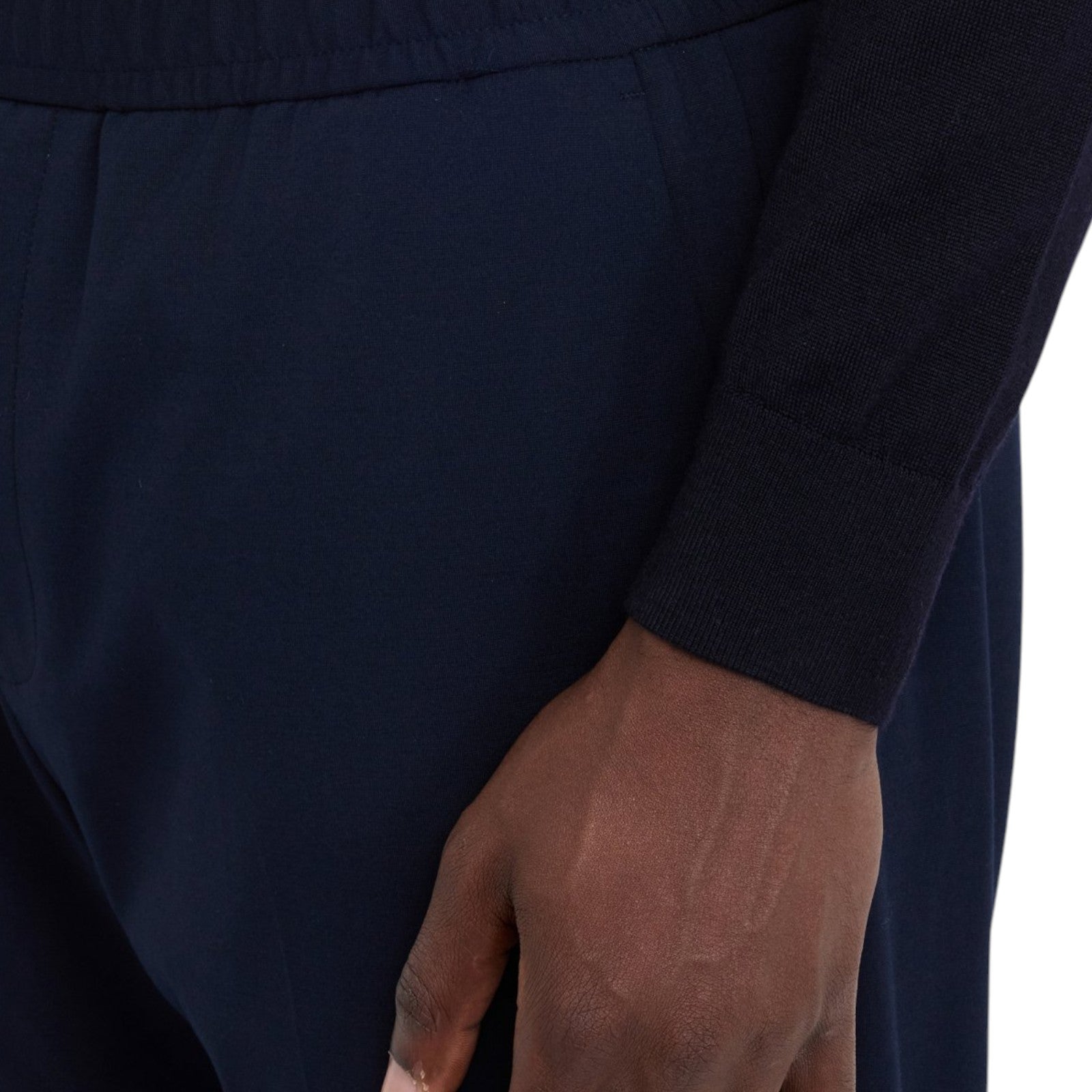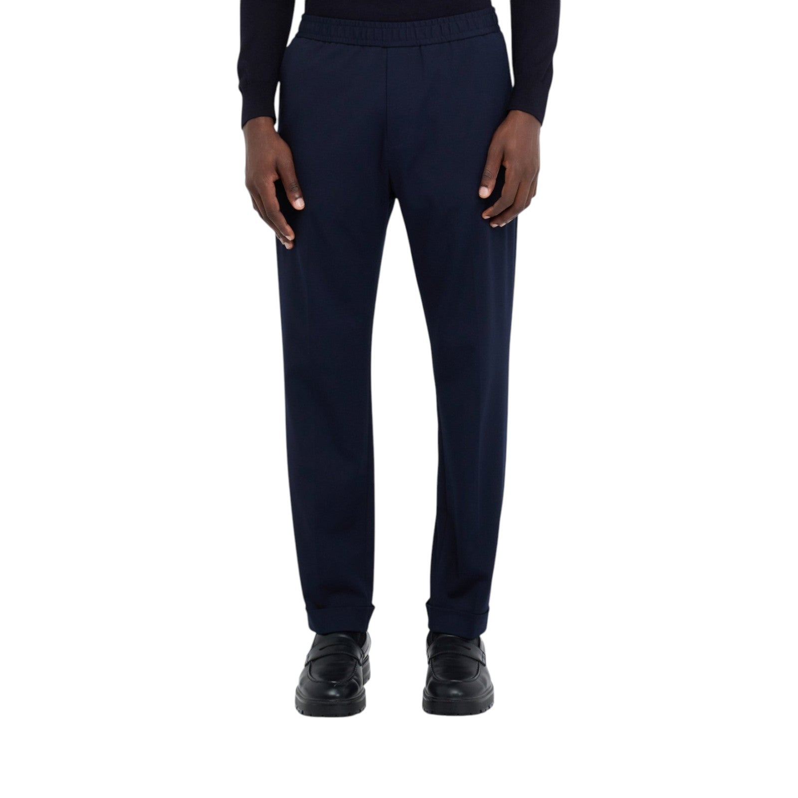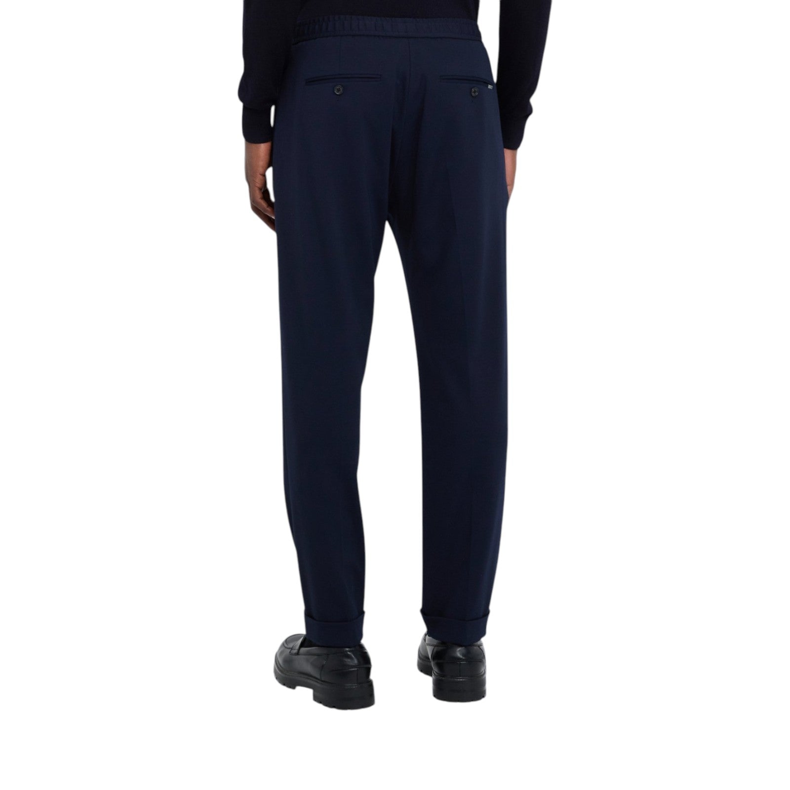 Pantaloni chino in jersey di viscosa. Vita media con inserto elastico. Comode tasche. Gamba asciutta. Tasche a filetto sul dietro. Risvolto sul fondo.