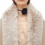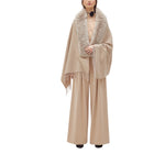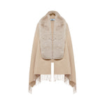 Stola in maglia di misto viscosa con collo in faux fur e fondo con frange.