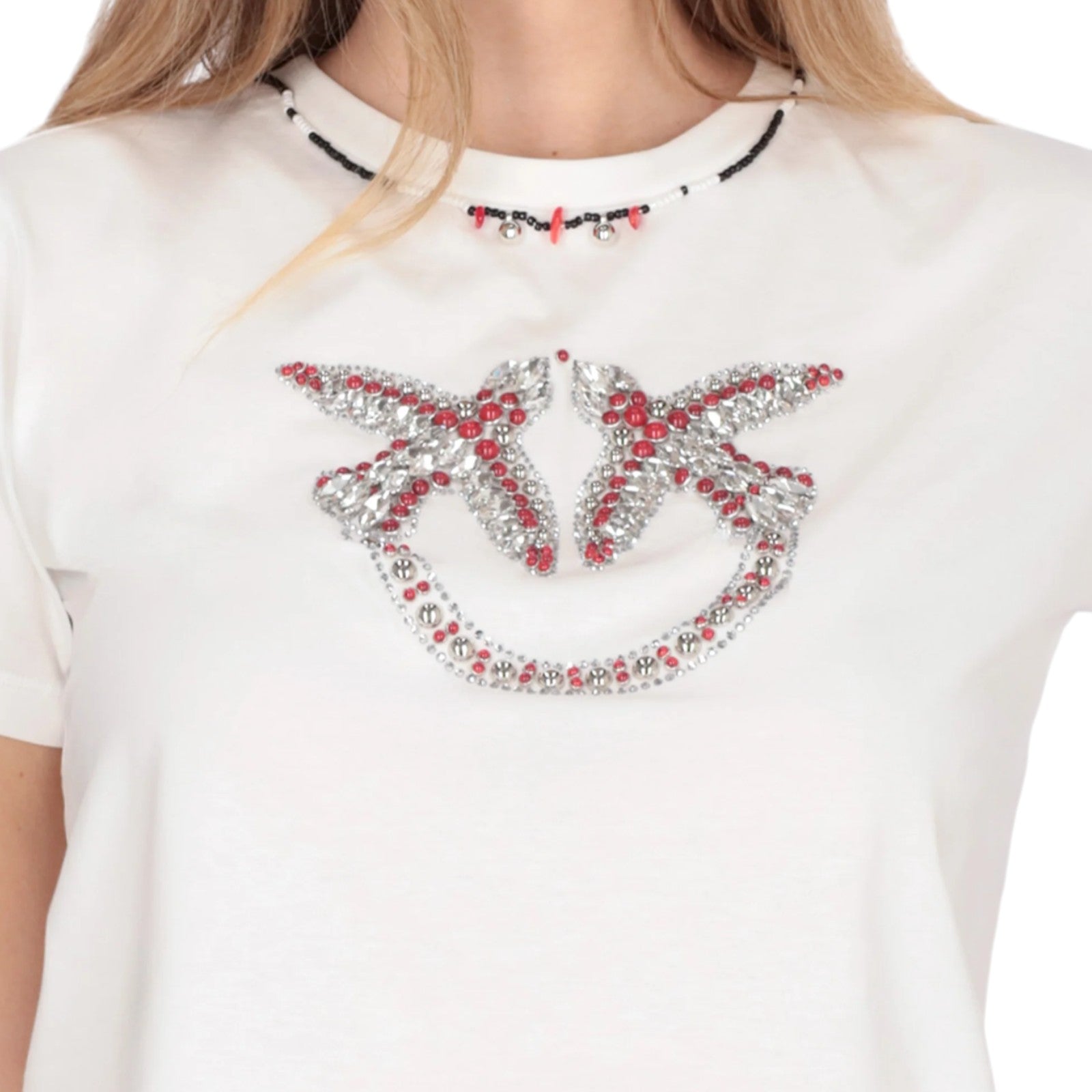 T-shirt donna con ricamo e strass