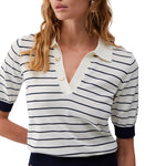 Top a righe. Colletto a polo con scollo a V. Decorazioni con bottoni dorati.