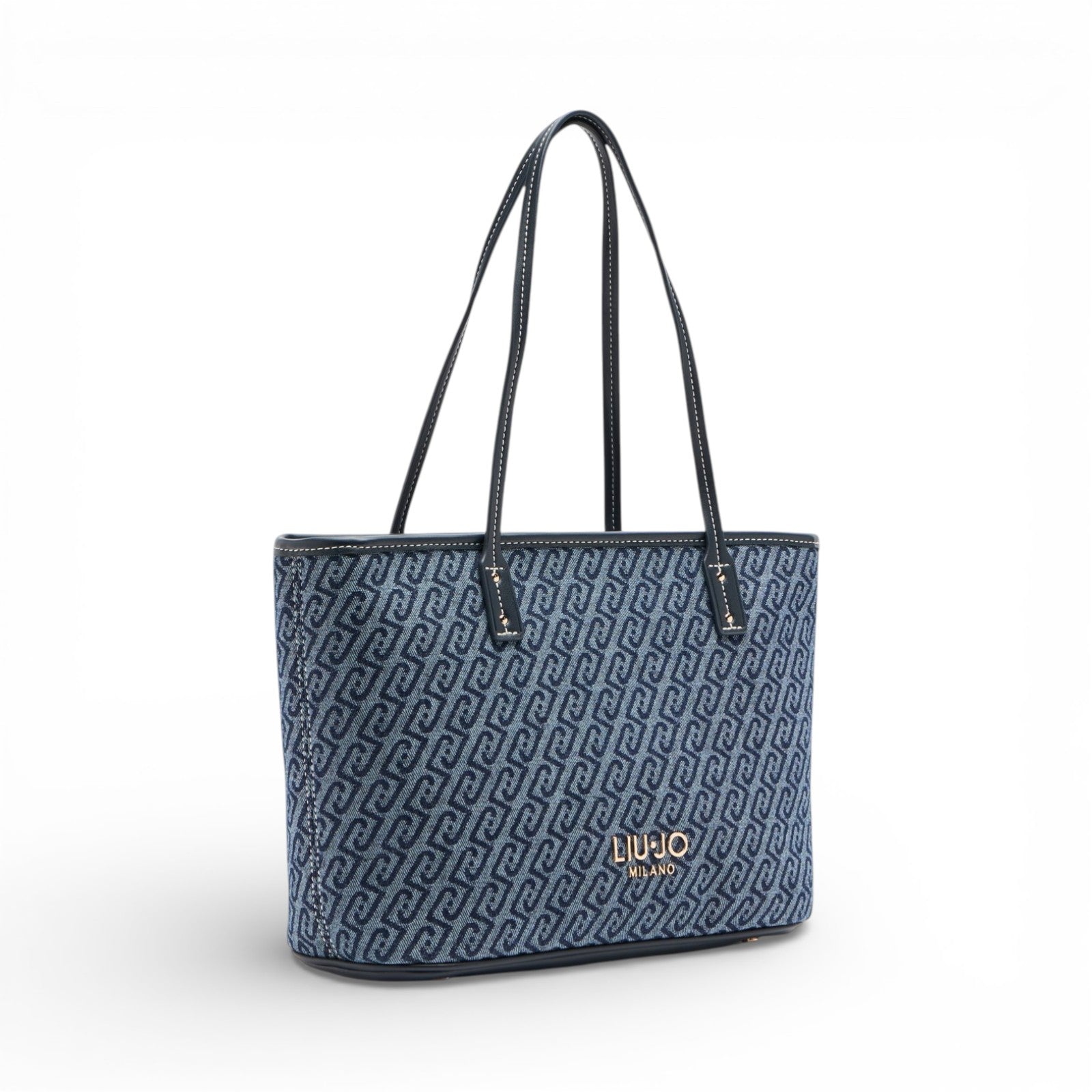 Borsa tote piccola. Realizzata in denim jacquard. Fodera interna. Ampio scomparto centrale. Chiusura con zip.